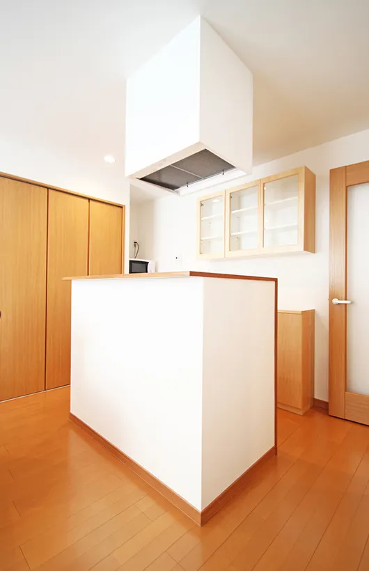 建物全体をまるごとリノベーションした物件の代表格。年代物の古い木造アパートがこのように生まれ変わるとは誰が想像出来たでしょうか?床や家具などは木目調で統一され、落ち着いた雰囲気に。ベッドやテレビをはじめ、生活に必要な設備が最初から整った『オール・イン・ワンルーム』です。ワンルームといっても、このA201号室はアイランド型キッチンにIHコンロを備え付けるというこだわりが。何も迷わず、すぐに生活を始められるのは、不安がつきもののお一人暮らしにとっては嬉しい限りです。思わずため息が出るような魅力的なオール・イン・ワンルームで理想の一人暮らしを始めましょう。