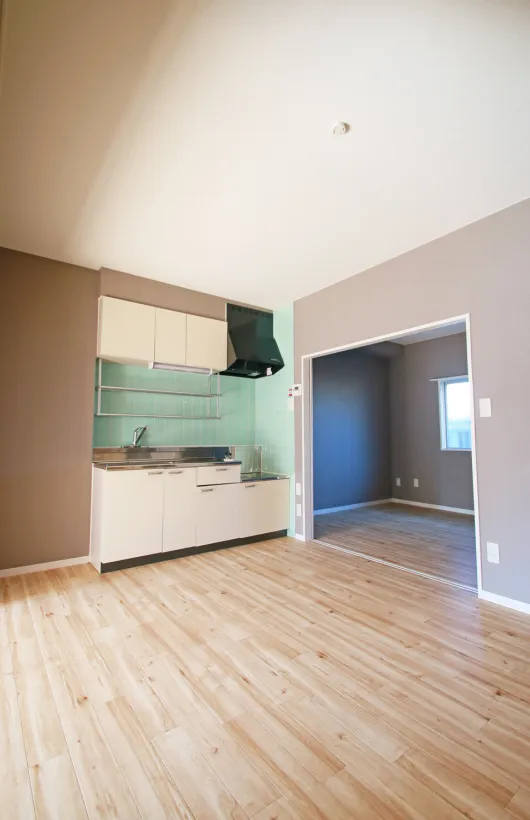 桶川市郊外に位置する殿山グリーンハイツ。築30年を経過したのを機に新たな未来へと歩み始めました。3DKの間取りは現代の生活スタイルに合わせてオール洋室へ変更し、2LDKへ。間取り変更により壁が占めるスペースが減少し、郊外特有の優しい風が南側の洋室からダイニングスペースを通り、北側の洋室へ抜けていく新たな効果が生まれました。お部屋の空気さえ変えてしまうリニューアル、これがトップクラスの“開放感”です。