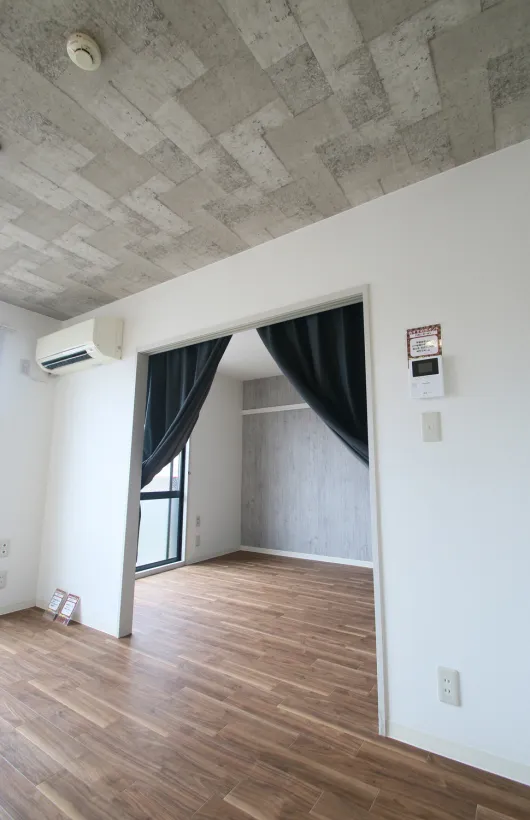 そして天井である。アクセント柄の天井が部屋全体の雰囲気を落ち着かせている。