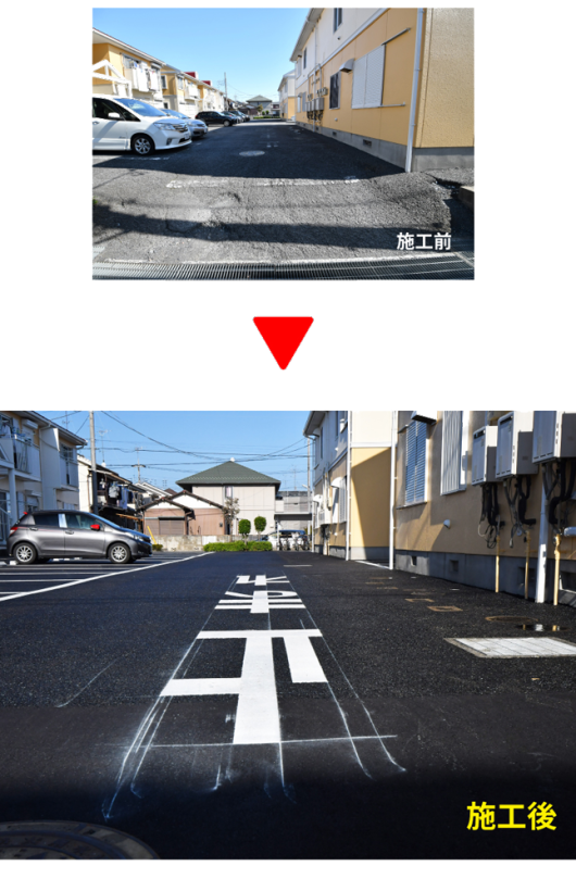 駐車場の白線や駐車番号はクッキリと浮かび上がり